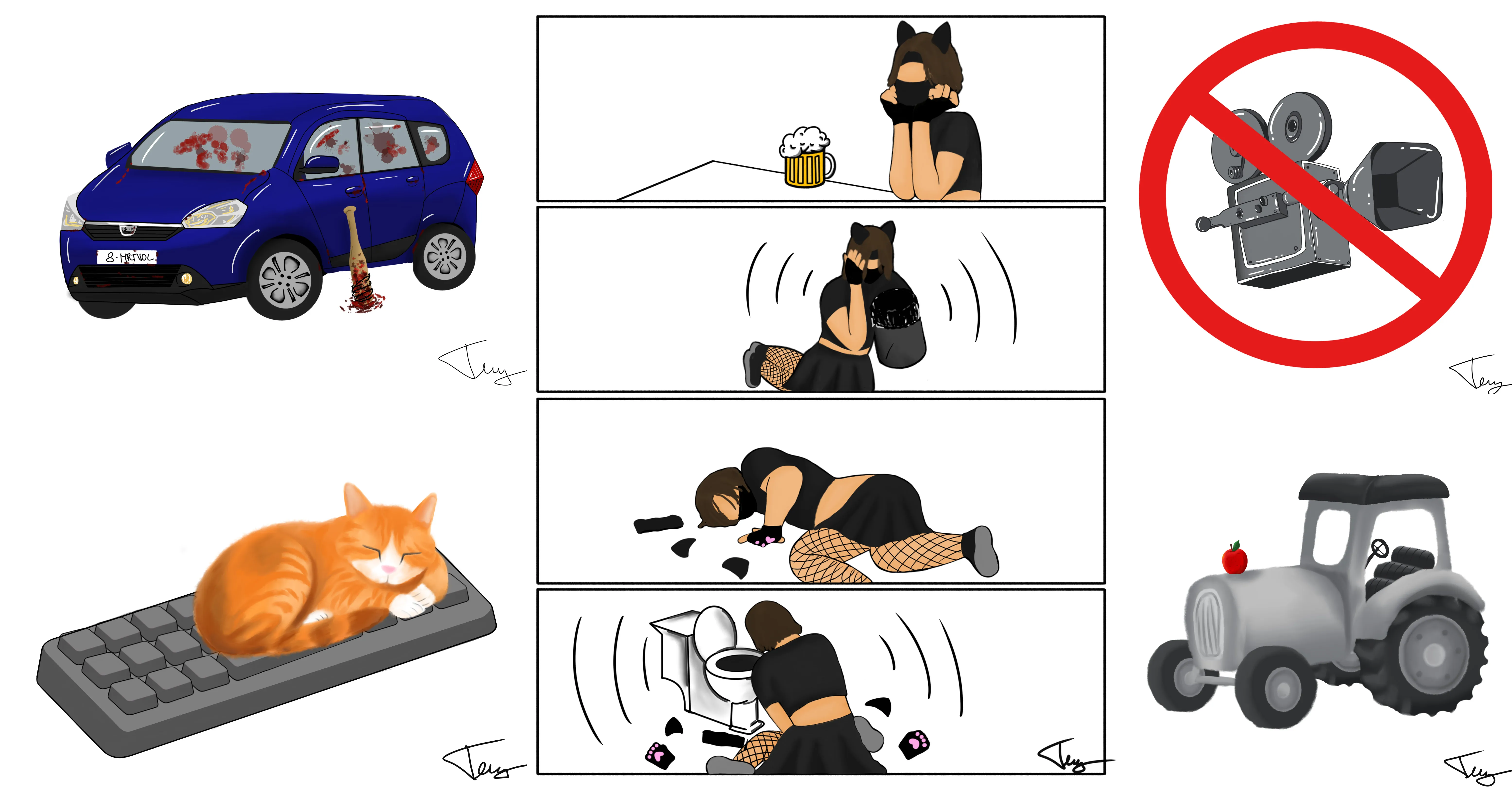 I designed and hand-drew five unique in-game assets. Players could purchase them with in-game currency and then display them as wall decorations. Each asset carries a reference, enriching the game environment and reinforcing the atmosphere.